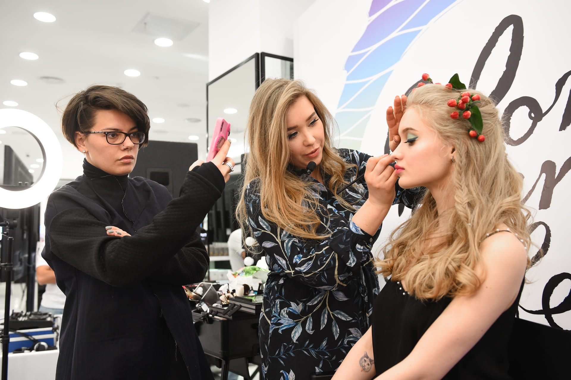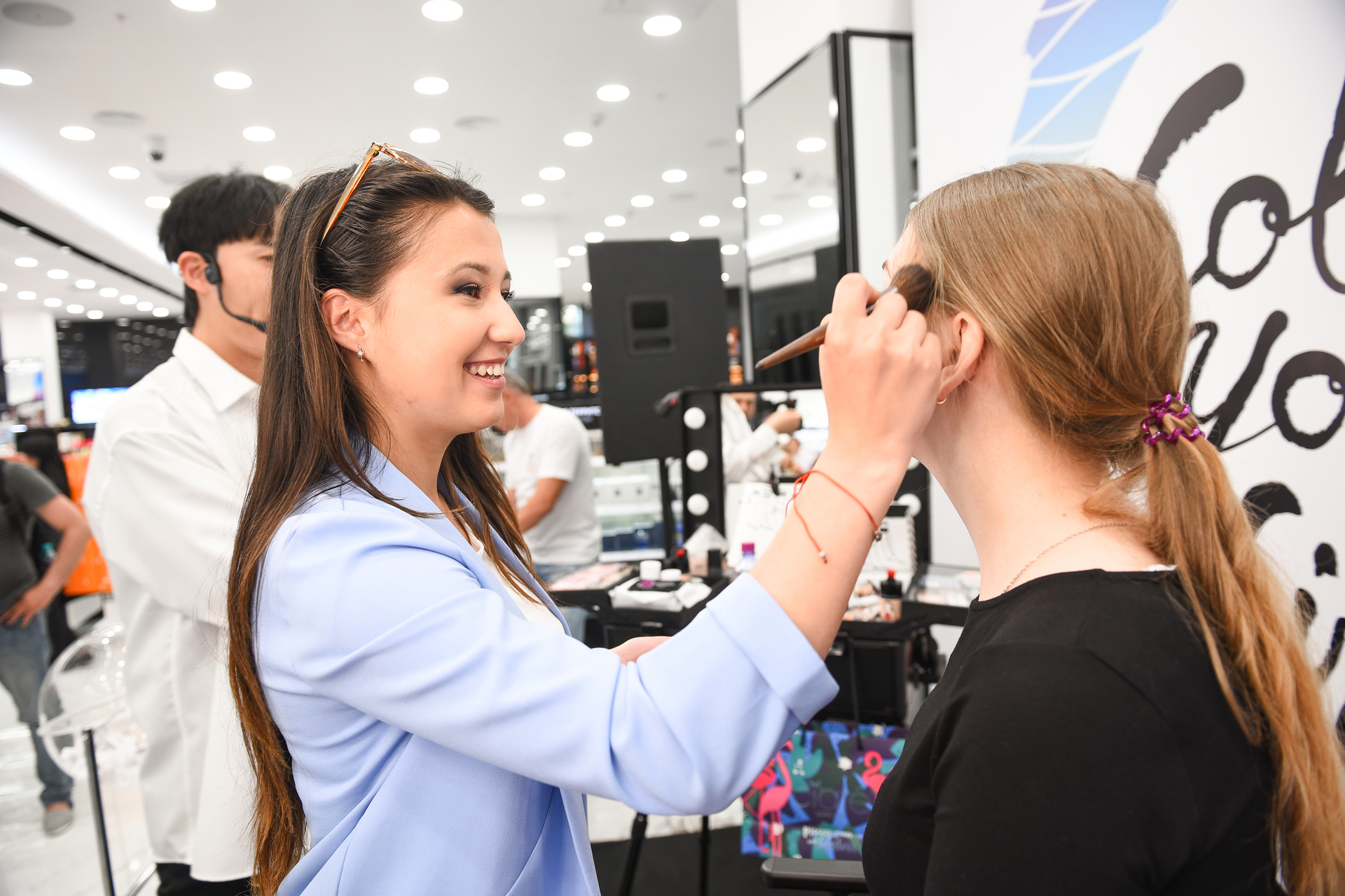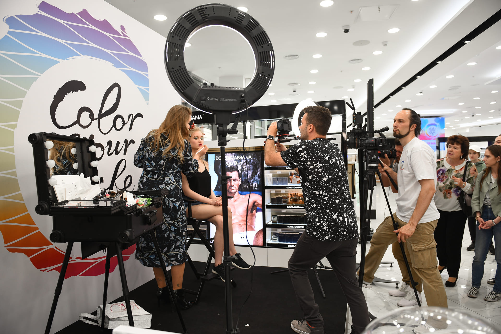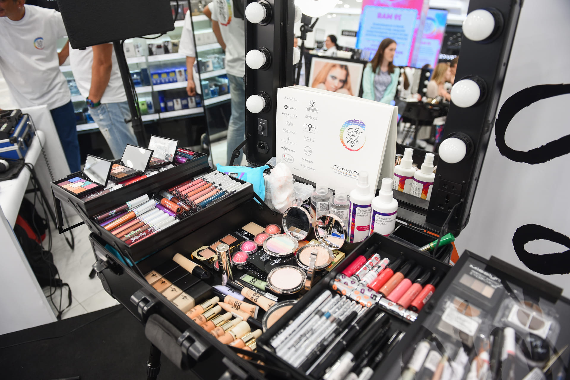 Как было отмечено выше, максимум внимания мы уделили соблюдению единых стандартов для всех задействованных локаций – ими были выбраны флагманские магазины Л’Этуаль в 11 городах России. Все они получили единое тематическое оформление залов, стойки для макияжа и полное техническое обеспечение аудио и видеотехникой. Также мы пригласили ведущих бьюти-блогеров и представителей включенных в BTL-кампанию брендов ОВ, ведущих и диджеев. Помимо этого, мы подготовили и напечатали рекламные материалы и купоны для лотерей. Важно отметить: наши сотрудники оказывали полную поддержку мероприятия и присутствовали на каждой акции во всех включенных в событие точках Л’Этуаль. Это гарантировало, что каждое из отдельных мероприятий будет соответствовать и начальной идее, и всем корпоративным стандартами торговой сети.