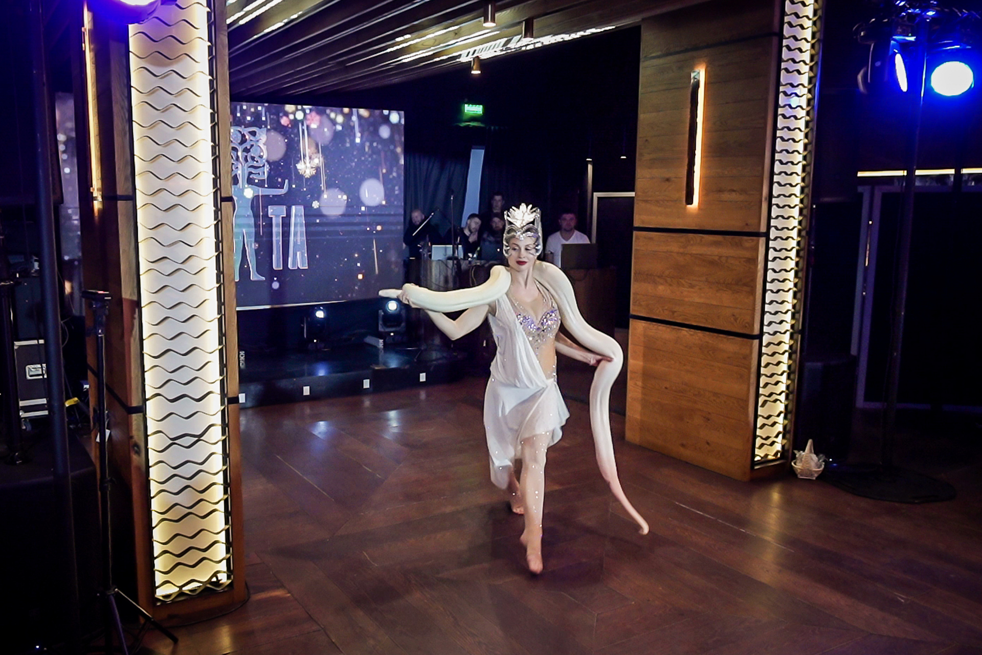 Нами было организовано и проведено новогоднее мероприятие с участием яркого шоу-балета, тематическими викторинами и конкурсами от ведущего. Поскольку наступавший 2025 – год змеи, гости увидели оригинальное шоу с живым питоном и сфотографировались с символом года. Атмосфера была настолько душевная, что запели даже повара, которые в итоге оказались лучшими солистами музыкальных театров Москвы. А завершился праздник дискотекой под живое выступление кавер-группы.