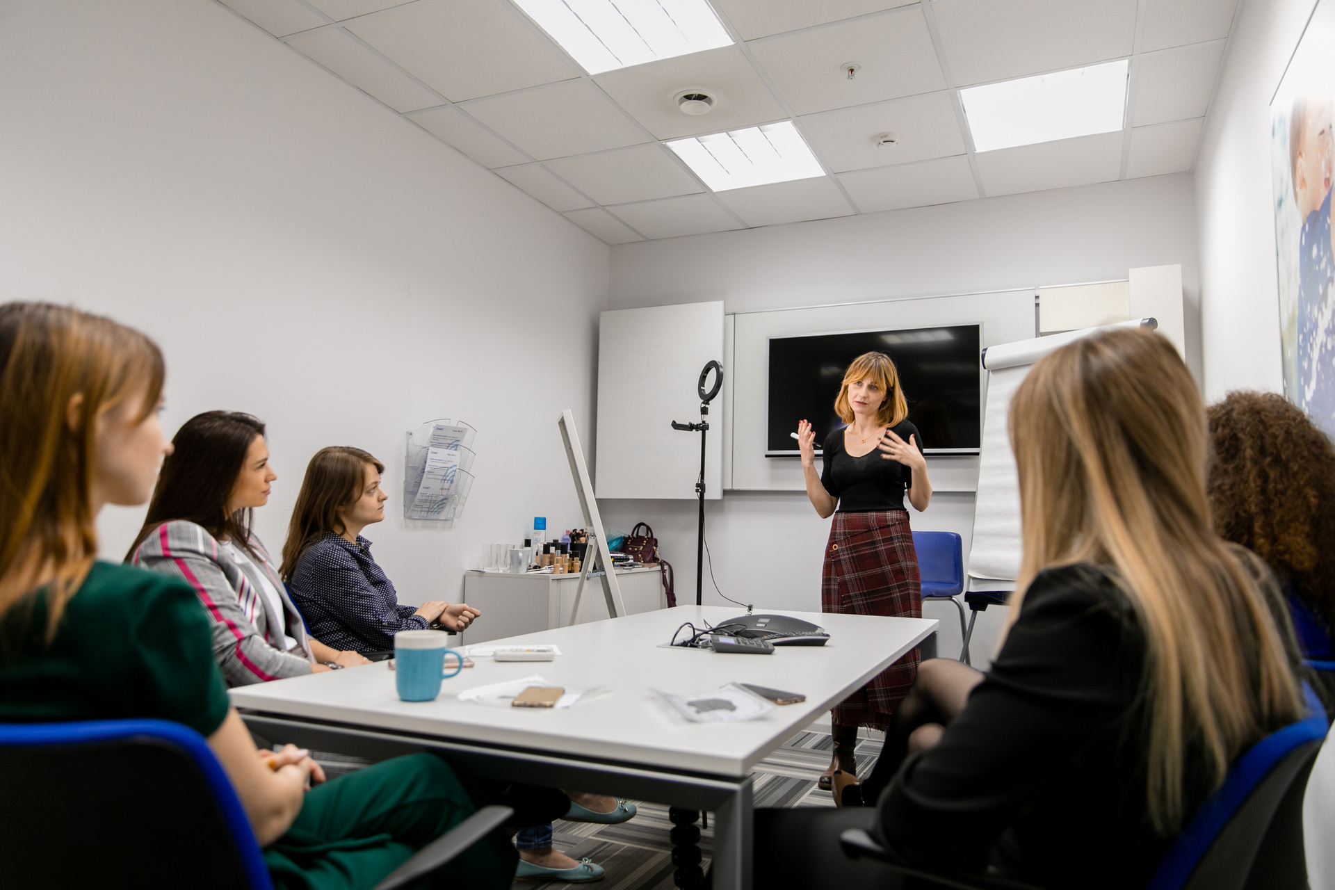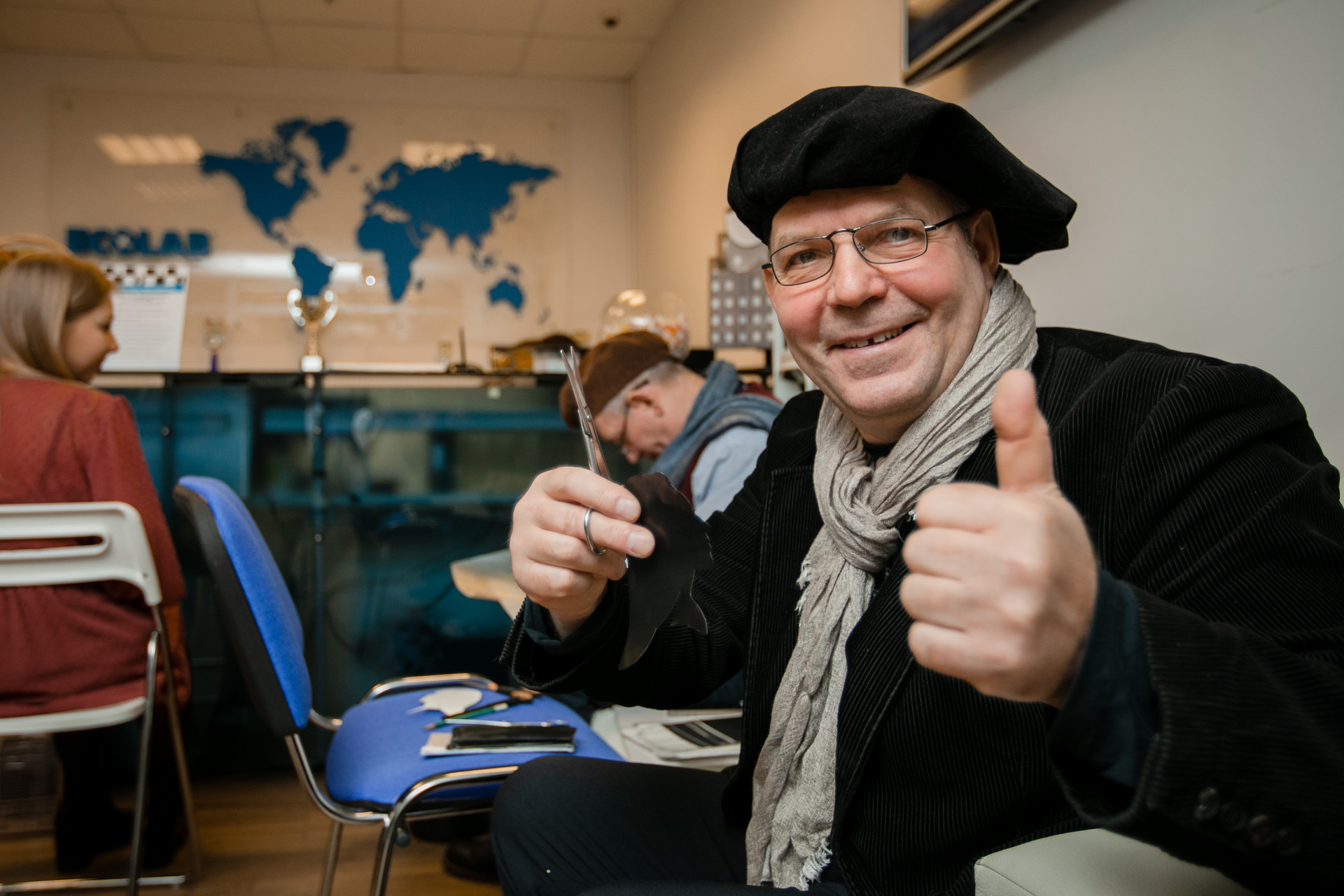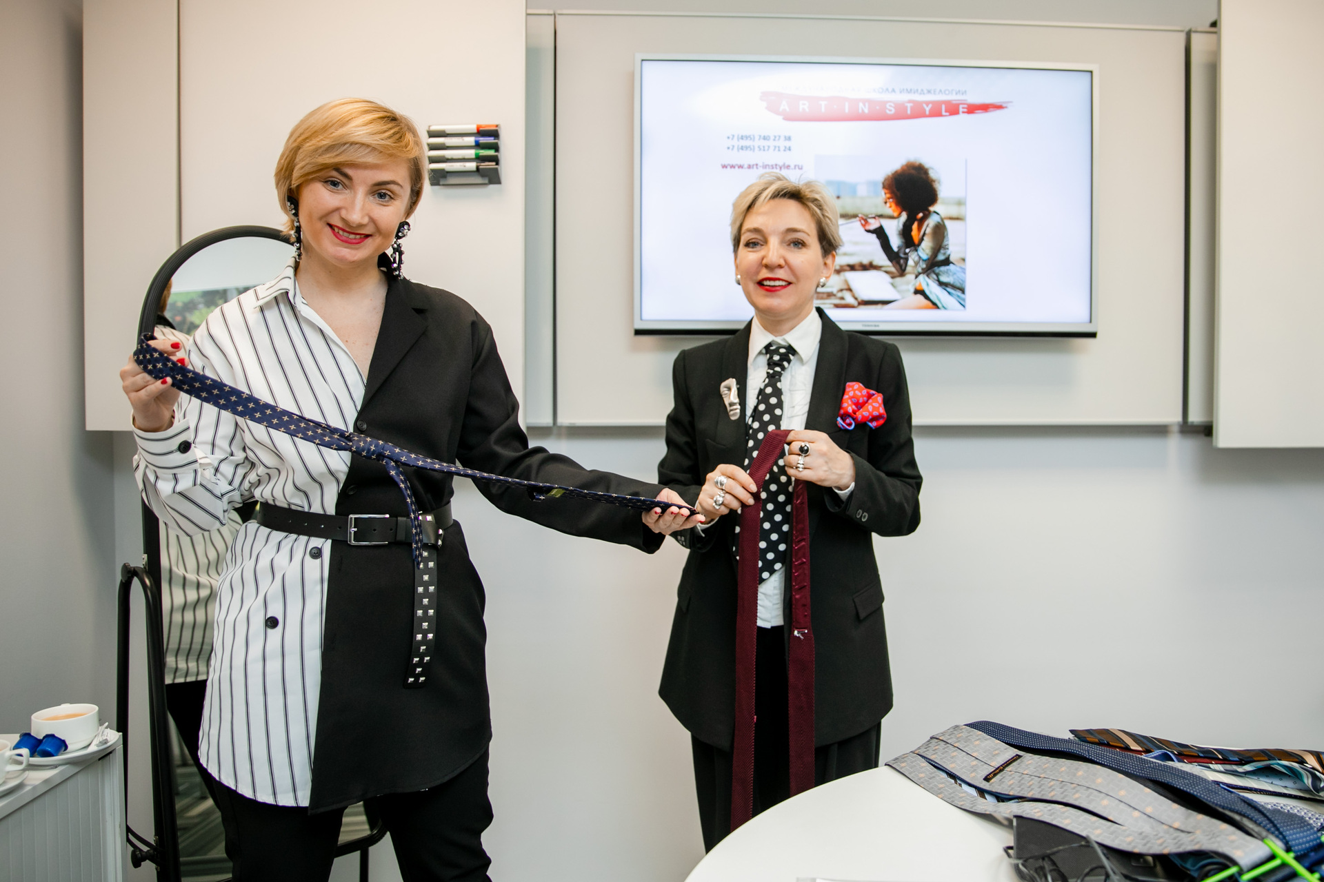 Соединение черных и белых цветов мы выдержали во всем. Прежде всего наши специалисты разработали и изготовили стильные декорации для украшения офиса и фотозону. Также мы провели мастер-класс по шахматам и пригласили художника-силуэтиста, создававшего портреты участников «черным по белому» с повторением их профилей. Кроме того, по-настоящему всеобщим действом стало рисование картины по номерам красок всеми сотрудниками офиса. Что же до «раздельных» активностей, при их проведении мы руководствовались «офисной» целесообразностью. Поэтому для мужчин состоялся мастер-класс по правильному сочетанию галстука и делового костюма, а женщины участвовали в мастер-классе, посвященном созданию стильного, элегантного макияжа для офиса. А еще нельзя забыть о приготовленных нашей командой угощениях и праздничном торте – День сотрудника благодаря этому завершился по-настоящему торжественным образом.