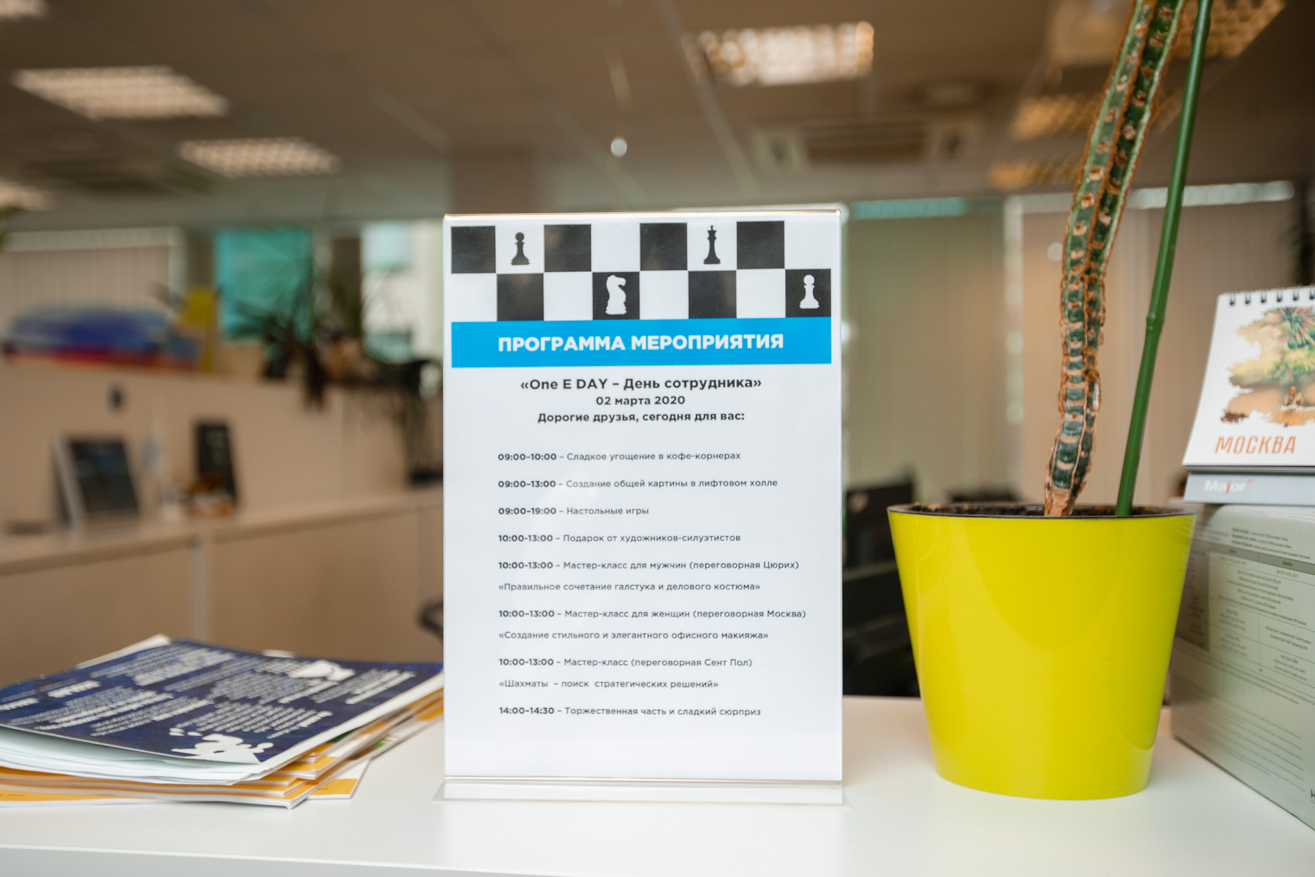 Нестандартные задачи по организации мероприятий бывают очень разными: как крупномасштабными, так и более «компактными». Пример – проведенный нашей командой офисный праздник «День сотрудника». Его необычная концепция позволила сделать традиционное и камерное мероприятие заметно оригинальнее и ярче – и при этом не забыть о главной цели — командообразовании.